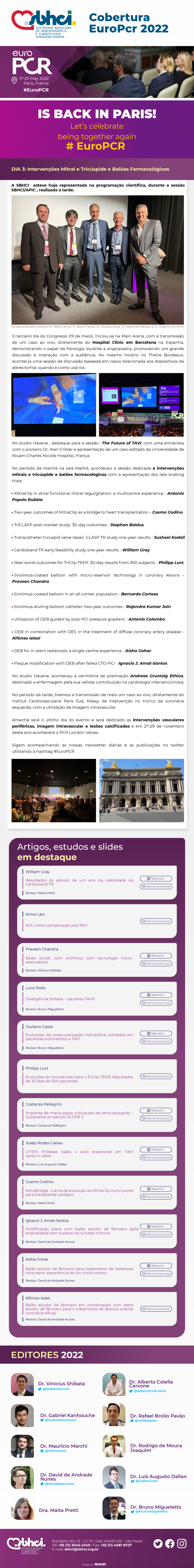 :: Informativo SBHCI - Cobertura EuroPCR 2022